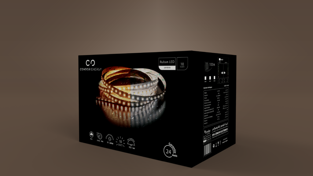 Pour Condor Electronics, nous avons conçu le packaging de leur Smart TV, en mettant l’accent sur l’élégance, la modernité et l’expérience client. L’objectif était de créer un emballage qui reflète la qualité du produit tout en se démarquant visuellement sur le marché.
