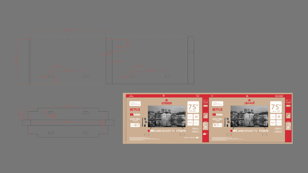 Pour Condor Electronics, nous avons conçu le packaging de leur Smart TV, en mettant l’accent sur l’élégance, la modernité et l’expérience client. L’objectif était de créer un emballage qui reflète la qualité du produit tout en se démarquant visuellement sur le marché.